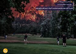 در سپتامبر سال ۲۰۱۷ و در حالی‌که یکی از بزرگ‌ترین آتش‌سوزی‌های جنگلی شمال‌غرب آمریکا در جریان بود، سه مرد در زمین گلفی در ایالت واشنگتن، بی‌هیچ نشانی از اضطراب، به بازی خود ادامه دادند. تصویری که از این لحظه ثبت شد، به‌سرعت در سراسر جهان منتشر شد_و نه فقط به‌دلیل آتش، بلکه به‌خاطر آن‌چه در پیش‌زمینه در جریان بود: بی‌تفاوتی.