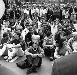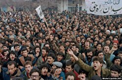 تصویری از تظاهرات خیابانی مردم تهران در روز ۱۷ مهر ۱۳۵۷. در این روز جمعیت قابل توجهی از مردم، علیرغم اعلام حکومت نظامی، به خیابانها آمدند تا علیه رژیم پهلوی اعتراض کنند. این اعتراضات شروعی دوباره برای شعلهور شدن اعتراضات سراسری بود، اعتراضاتی که پس از واقعه ۱۷ شهریور کمرنگ شده بودند.