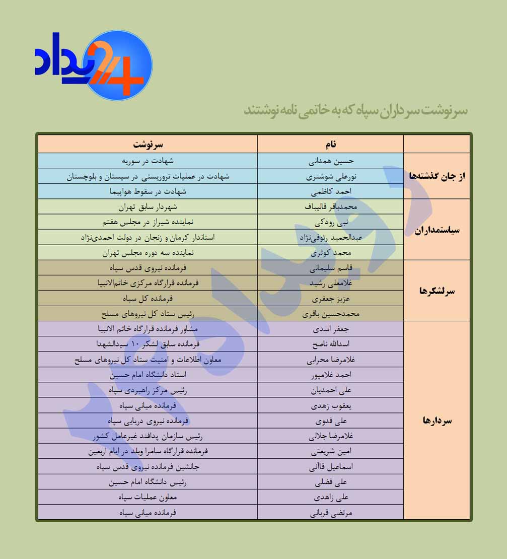 متن نامه فرماندهان سپاه به شرح زیر است: