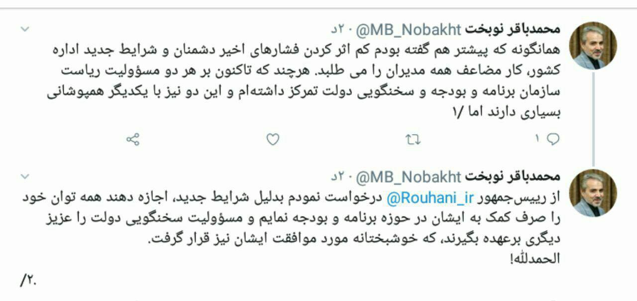 نوبخت با سخنگویی دولت خداحافظی کرد