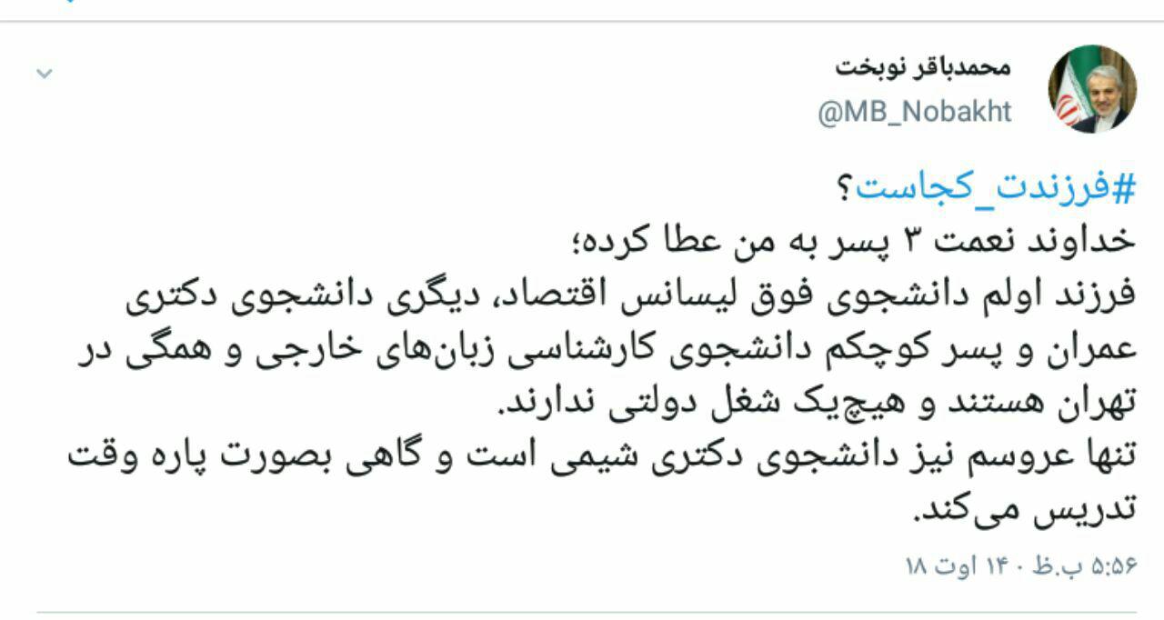 فرزندان نوبخت کجا هستند؟ + تصویر