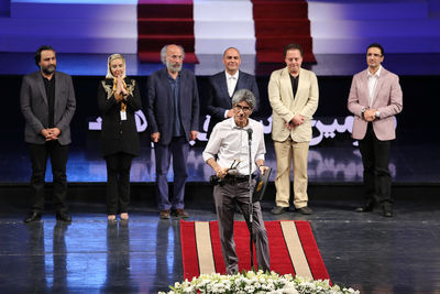 وی پس از پخش کلیپ با تشویق گسترده حاضران به روی سن آمد و دکتر ایازی، دکتر کیاسالار، دکتر حضرتی، کتایون ریاحی و مرضیه برومند، روی سن در کنار او قرار گرفتند و از وی تقدیر کردند.