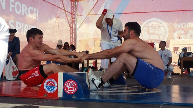 در روز نخست این بازیها و در مسابقات طنابکشی انفرادی رضا قیطاسی مدال طلای مسابقات را تصاحب کرد. در بخش تیمی مسابقات طناب کشی نیز ملیپوشان ایران در دیدار فینال مغلوب تیم قزاقستان شد و مدال نقره را کسب کرد.
