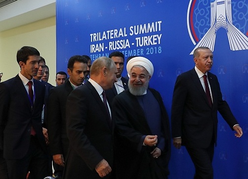 رئیس جمهور جمهوری اسلامی ایران حسن روحانی، رئیس جمهور فدراسیون روسیه ولادیمیر پوتین و رئیس جمهور جمهوری ترکیه رجب طیب اردوغان به منظور برگزاری نشست سه‌جانبه‌‌ سران در تاریخ 7 سپتامبر 2018 در تهران گرد هم آمدند.