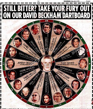 تصویر بکام روی مرکز صفحه دارت و البته نمایش مجسمه اعدام شده او در اطراف لندن به خوبی نشان می داد که هواداران تیم ملی انگلیس تا چه اندازه از این بازیکن ناراحت هستند. در اولین بازی خارج از خانه او برابر وستهام هواداران با بطری از بکام استقبال کردند و به شدت او را هو کردند. فرگوسن در کتاب زندگینامه خود نوشت: من بعد از بازی با آرژانتین به سرعت به او زنگ زدم چون میدانستم در رختکن خیلی گریه کرده و ناراحت است. به او دلداری دادم و گفتم ما میدانیم او بازیکن فوقالعادهای است و از او حمایت میکنیم. بکام نیز به دوران اوج بازگشت و با زدن ۹ گل و ثبت ۹ پاس گل در آن فصل نشان داد که پاسخ اعتماد فرگی را داده است.