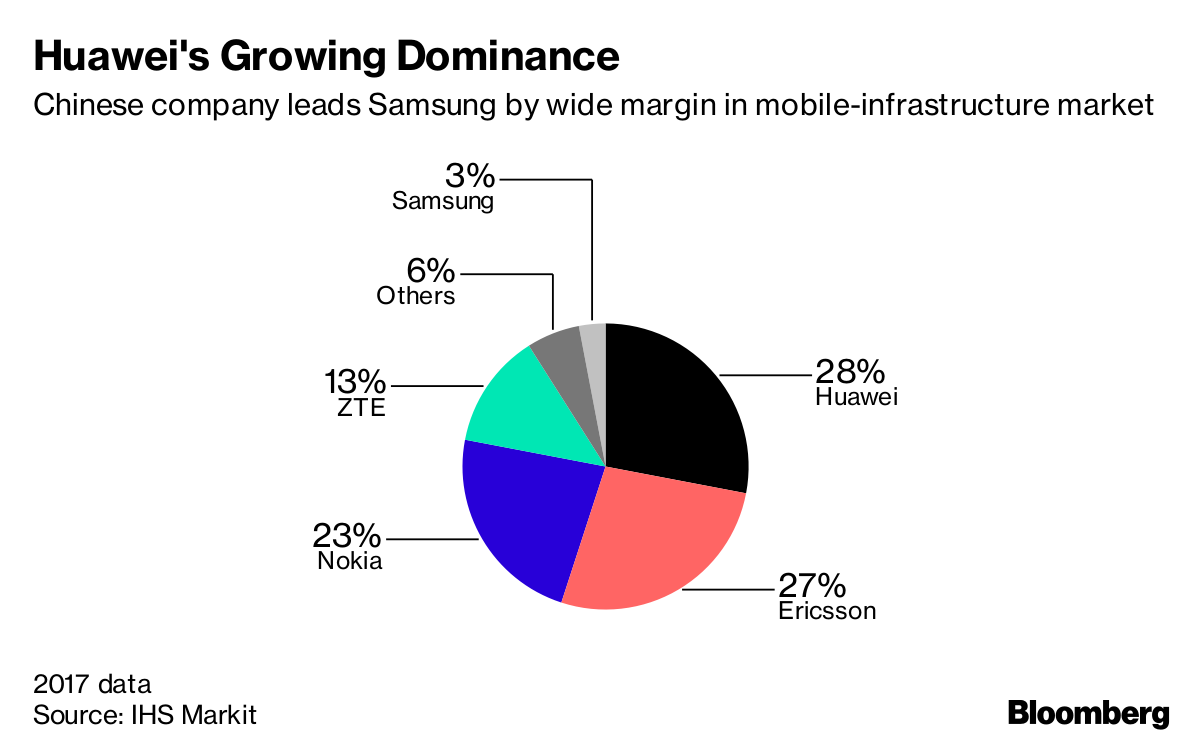 موفقیت هوآوی در بازار تجهیزات موبایل برای مصرفکنندگان نهایی هر روز فاصله این شرکت را با سامسونگ و اپل کمتر میکند. هماکنون سامسونگ ۲۱ درصد و هوآوی ۱۰ درصد از بازار گوشیهای هوشمند را در دنیا به خود اختصاص دادهاند که همانطور که ذکر شد این فاصله هر روز کمتر میشود. این خطر موجب شده شبکههای ۵G برای سامسونگ اهمیت زیادی داشته باشد چرا که این شرکت قصد دارد در کشورهایی مانند ژاپن و کرهجنوبی که قصد سرمایهگذاری گسترده روی ۵G را دارند موقعیت خود مستحکمتر کند.