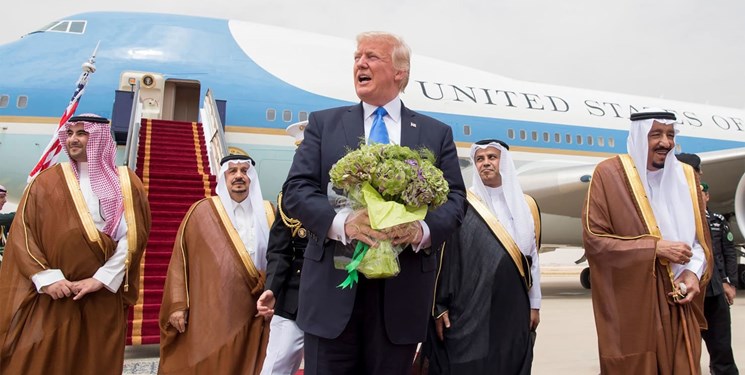 ترامپ پیش از این هم خطاب به عربستان و چند کشور عربی دیگر در منطقه گفته بود که اگر آمریکا از این کشورها حمایت نکند، این حکومتها به سرعت فرومیپاشند و دوام چندانی نمیآورند. او از این کشورها خواسته در عوض دریافت حمایت امنیتی از آمریکا، جنگهای واشنگتن در منطقه را پشتیبانی مالی کرده و با افزایش تولید نفت از بالا رفتن قیمت در بازارهای جهانی جلوگیری کنند.