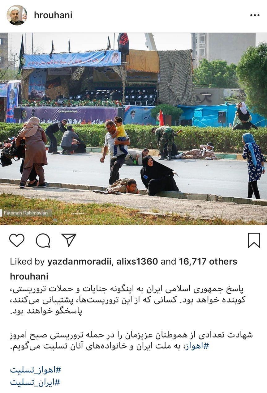 واکنش اینستاگرامی روحانی به حادثه تروریستی اهواز