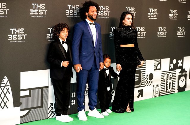 - در چند سال گذشته همیشه مارسلو به عنوان دفاع چپ در تیم منتخب سال فیفا حضور داشته است. بعید به نظر می رسد اگر امسال اتفاق دیگری برای این پست در تیم منتخب رخ دهد. او به همراه همسر و فرزندش در این مراسم حاضر است.