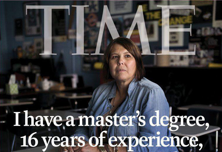 “من مدرک کارشناسی ارشد دارم با ۱۶ سال سابقهی کار اما مجبورم دو جای دیگر هم کار کنم و پلاسمای خونم را هم بفروشم تا بتوانم قبضهایم را پرداخت کنم. من یک معلم آمریکایی هستم.”