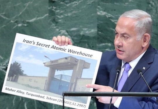 نتانیاهو مدعی شد آنچه نشان می‌دهد محل یک آرشیو اسناد اتمی و یک انبار مواد و تجهیزات اتمی ایران است.