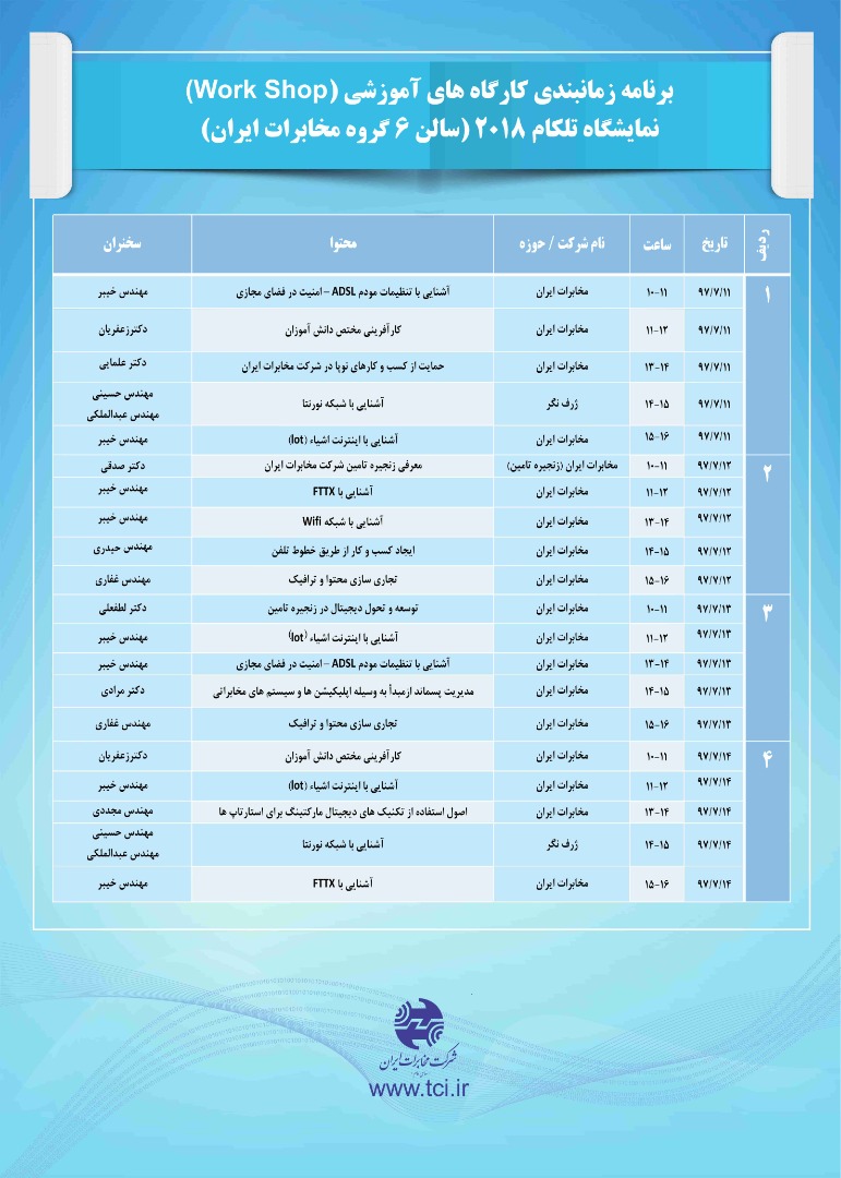 همزمان با برگزاری نوزدهمین نمایشگاه بین المللی تلکام ، کلاس های آموزشی تخصصی و متنوعی در غرفه شرکت مخابرات ایران ( سالن شماره ۶ ) برگزار می شود.