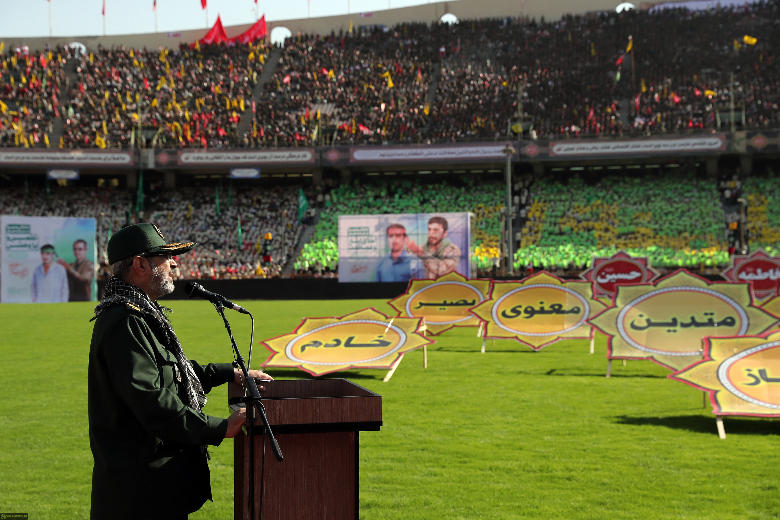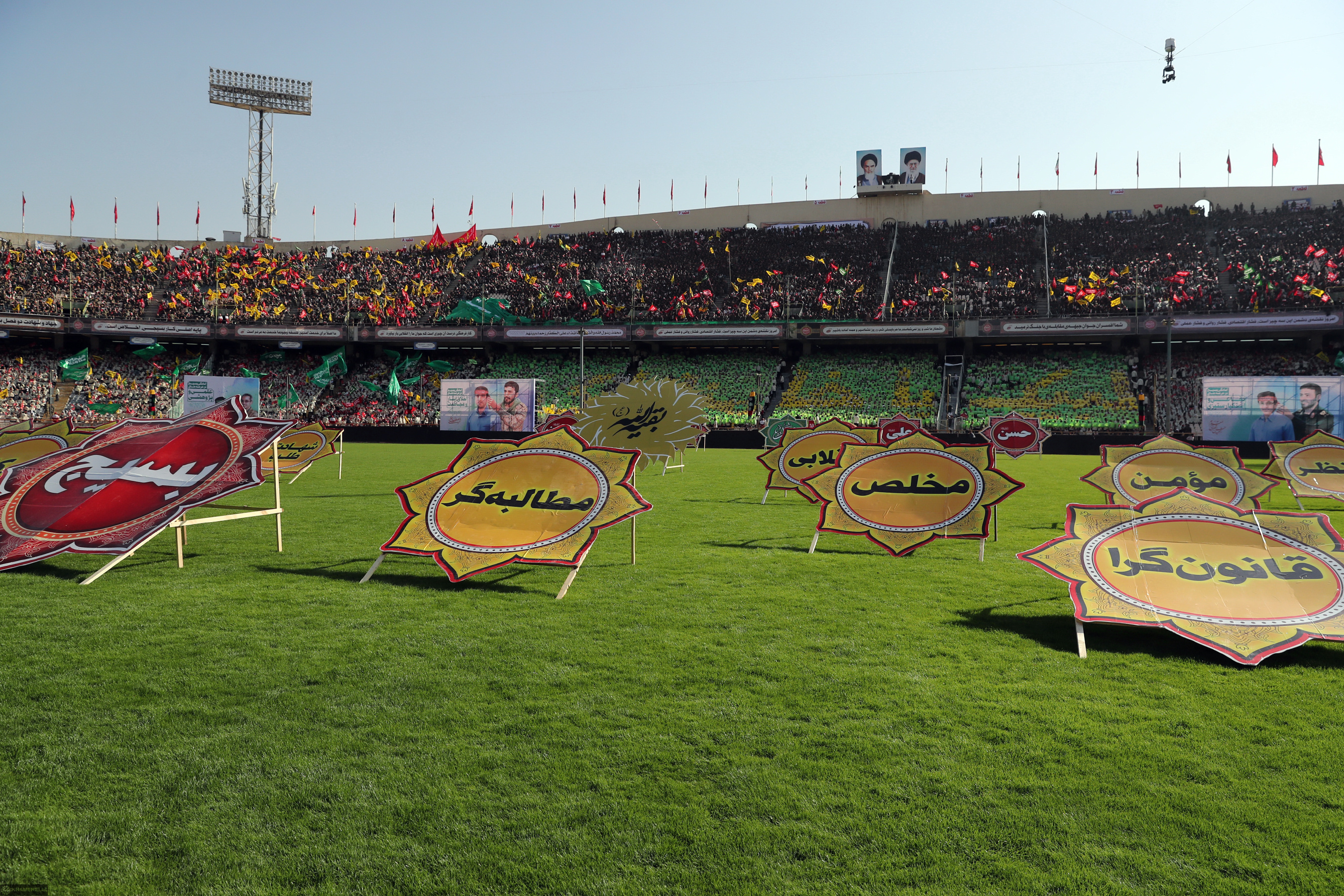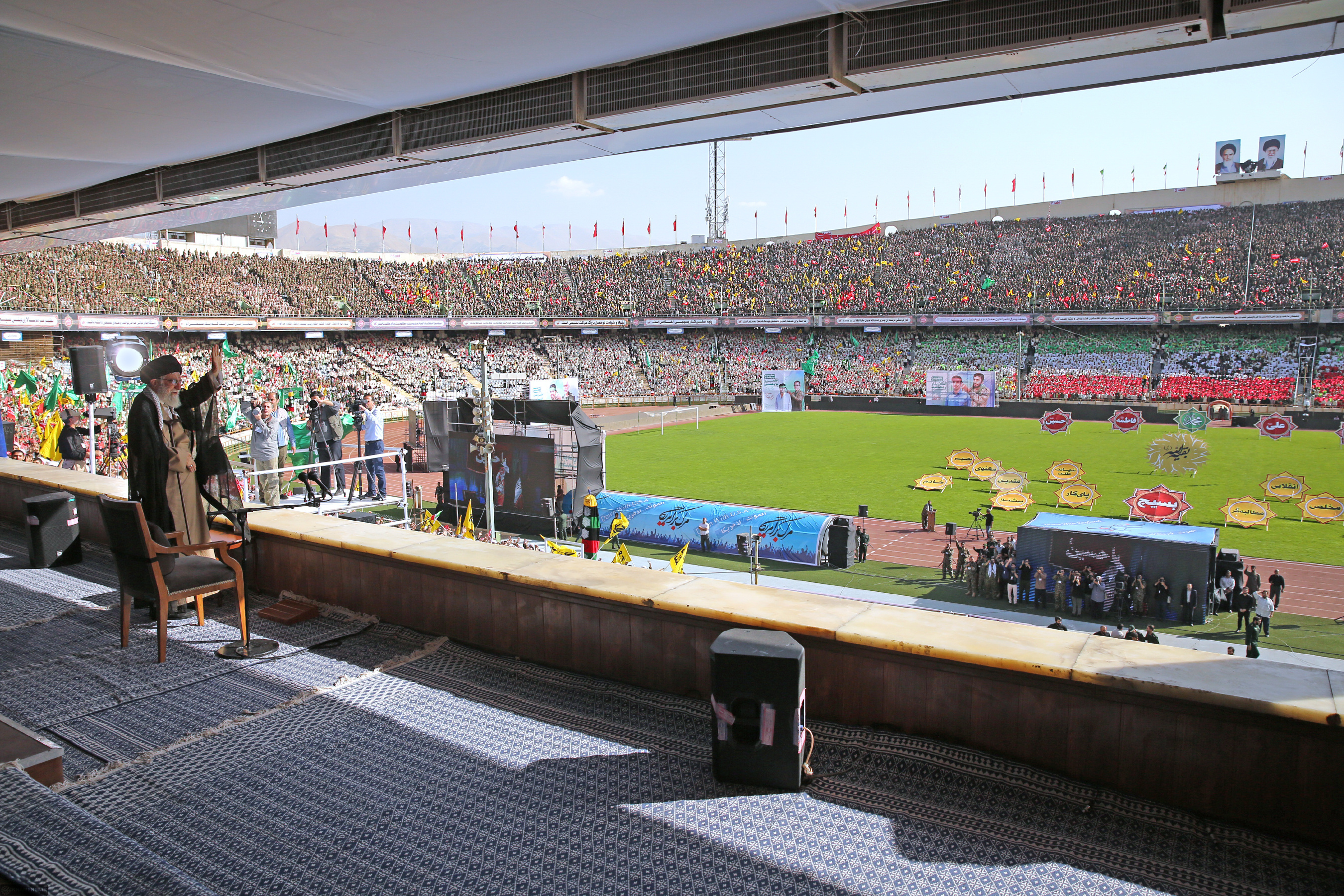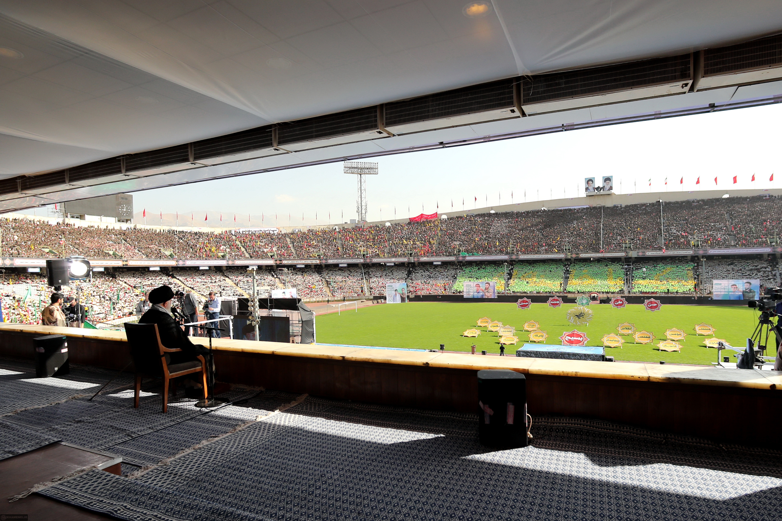 تصاویر حضور رهبر انقلاب در همایش ده‌ها هزارنفری «خدمت بسیجیان» در ورزشگاه آزادی