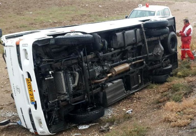 مصدومیت ۱۶ نفر بر اثر واژگونی مینیبوس حامل دانشآموزان/ حال دو مصدوم وخیم است