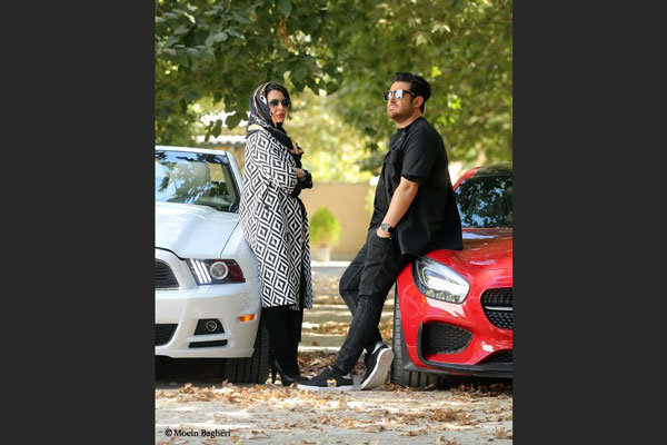 ژست رضا گلزار و ساره بیات کنار ماشینهای لوکس+عکس