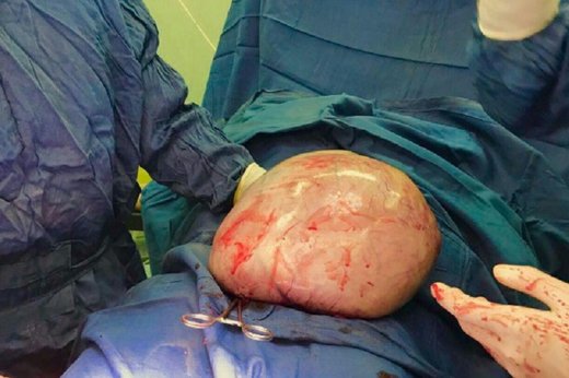 وی بیان کرد: پس از بررسی گزارش سی تی اسکن و سونوگرافی، تودهای بزرگ در ابعاد ۲۰*۳۰ سانتی متر مشاهده شد که با توجه به ضخامت و بزرگی سایز توده، بلافاصله بیمار به اتاق عمل منتقل شد.