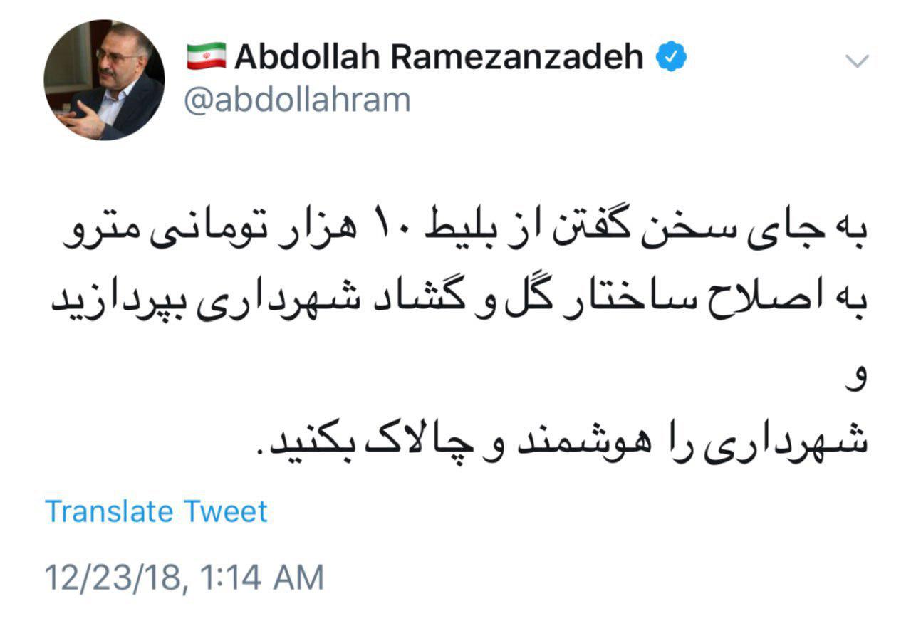 واکنش تند رمضانزاده به عضو شورای شهر تهران درباره بلیط ۱۰هزارتومانی مترو