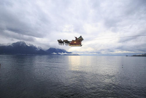 پرواز ارابه بابانوئل بر فراز رودخانه "لِمان" در سوییس
