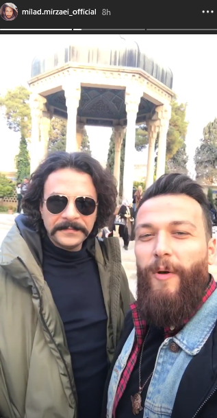 تصویری از میلاد میرزایى بازیگر نقش رشید و حسام منظور بازیگر نقش شازده در آرامگاه حافظ را مشاهده می کنید.