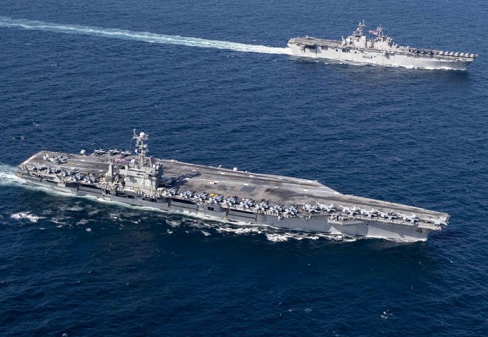 در ادامه این مطلب آمده است: طبق گزارش فرماندهی مرکزی ارتش آمریکا (سنتکام)، قایق های تندرو ایران در فاصله ۱۵۰۰ یاردی از ناو هواپیمابر یو اس اس هری اس، ترومن، ناوشکن یو اس اس بالکلی و ناوگانی از ناوهای فرانسوی، اقدام به برگزاری یک مانور دریایی کردند. به علاوه در این منطقه، کشتیهای تجاری نیز در حال تردد بودند.