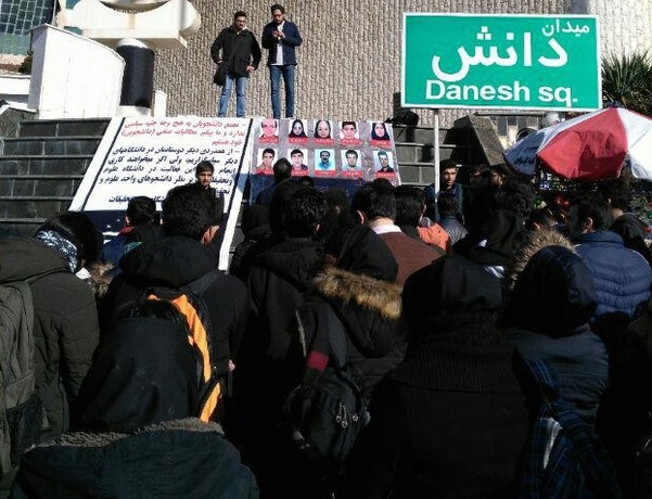 لحظاتی پیش تعدادی از دانشجویان واحد علوم و تحقیقات در میدان اصلی این دانشگاه تجمع کرده و با نصب بنری، تاکید کردند که «تجمع دانشجویان به هیچ وجه جنبه سیاسی ندارد و ما پیگیر مطالبات صنفی (دانشجویی) خود هستیم».