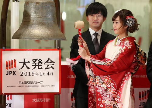 مراسم آغاز به کار رسمی نخستین روز کاری بازار بورس توکیو در سال 2019