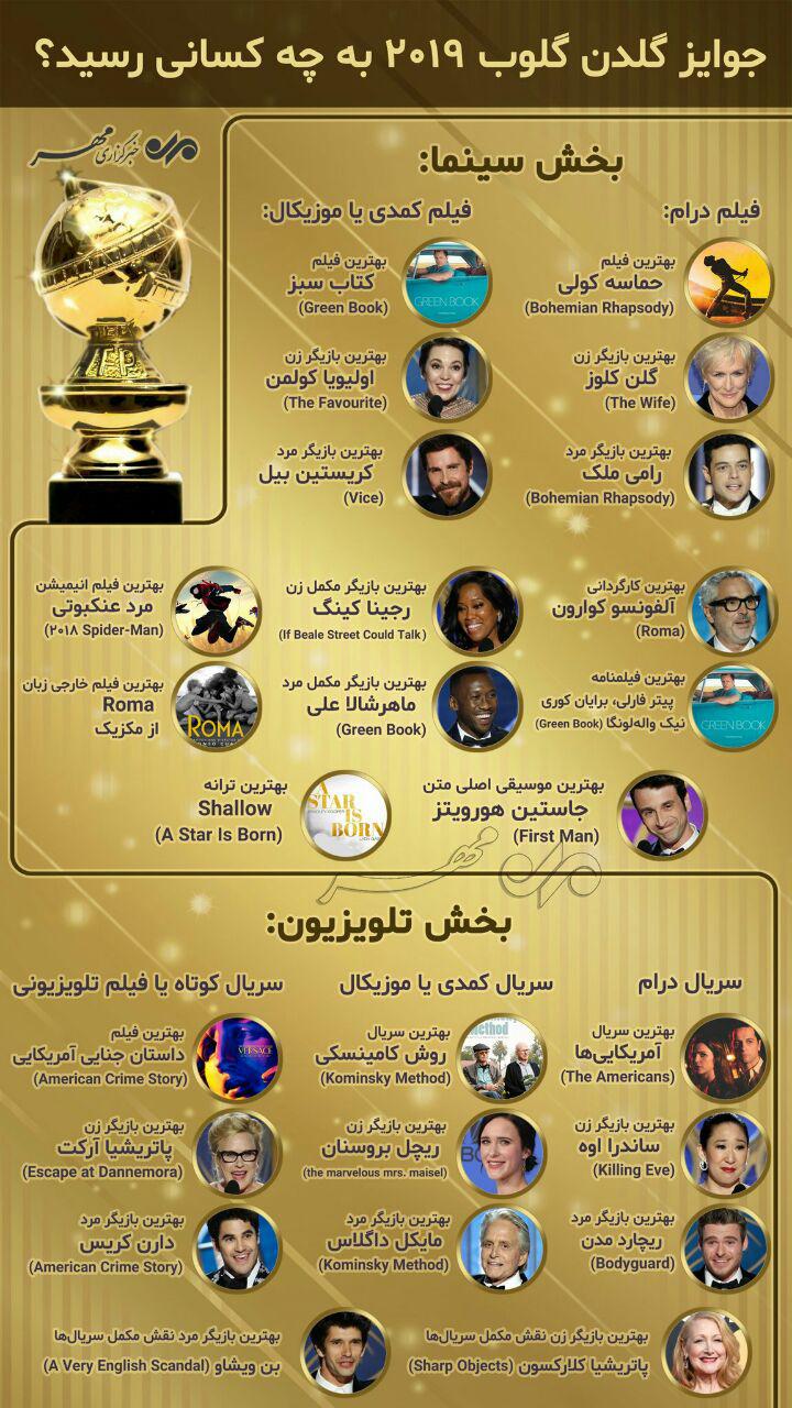 جامعه و فرهنگ » اجتماعی کد خبر: ۱۶۱۱۴۳ تاریخ انتشار: ۱۱:۰۰ - ۱۷ دی ۱۳۹۷ جوایز گلدن گلوب ۲۰۱۹ به چه کسانی رسید؟