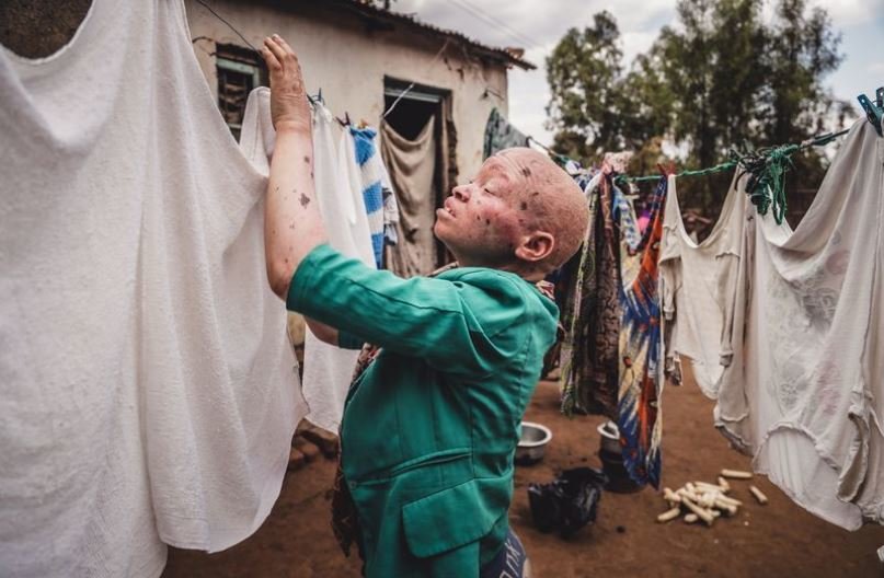 عکس امروز نشنال جئوگرافیک یک دختر جوان مبتلا به زالی یا آلبینیسم را نشان میدهد که در خارج از خانهاش در شهر لیلونگوه، پایتخت مالاوی، لباسهای شسته شده را پهن میکند. در این منطقه خرافات درباره آلبینیسم رایج است و پزشکان سنتی اعضای بدن افراد مبتلا به این بیماری را با قیمت بالایی میفروشند.