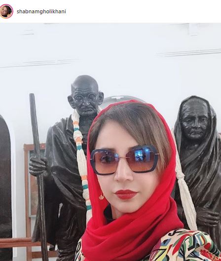 سلفی «شبنم قلیخانی» با گاندی در هند +عکس