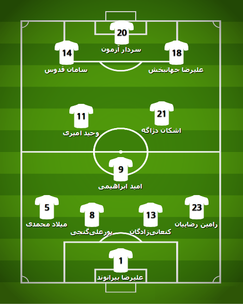 سردار آزمون مهاجم نوک تیم ملی است و علیرضا جهانبخش در سمت راست ایفای نقش میکند.