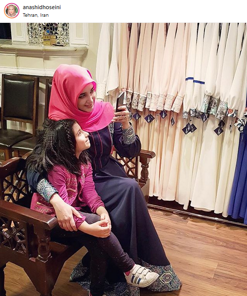 آناشید حسینی با انتشار این عکس نوشت: من و ستایش عزیز، که مامان مهربونش این لباسی که میبینید رو به اسم من طراحی کردن.