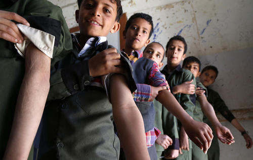 واکسیناسیون ضد سرخک و سرخچه در مدارس یمن