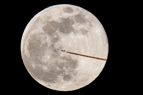 پرواز یک هواپیمای مسافربری از مقابل پدیده ماه کامل در "نورمبرگ" آلمان