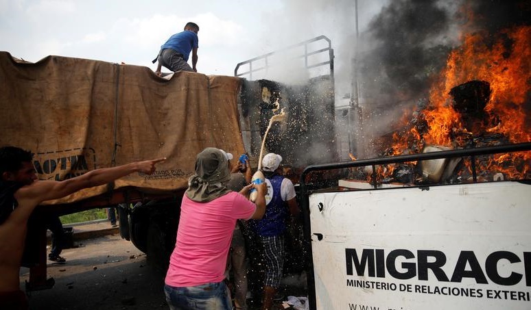 همین بی نانی، بهانه خوبی شد تا کشور‌های حامی گوایدو و مادورو، با محموله کمک‌های دارویی و غذایی سراغ این کشور و در واقع سراغ رئیس جمهور دلخواه شان بروند. آمریکایی‌ها کوشیدند کامیون‌های مواد غذایی را از طریق کلمبیا وارد ونزوئلا کنند، امری که با استقبال گوایدو و ممانعت مادورو روبرو شد و حتی دو کامیون نیز در مرز به آتش کشیده شدند. اما روس‌ها به راحتی کمک‌های خود را از طریق هوا و با موافقت مادورو به این کشور رساندند.