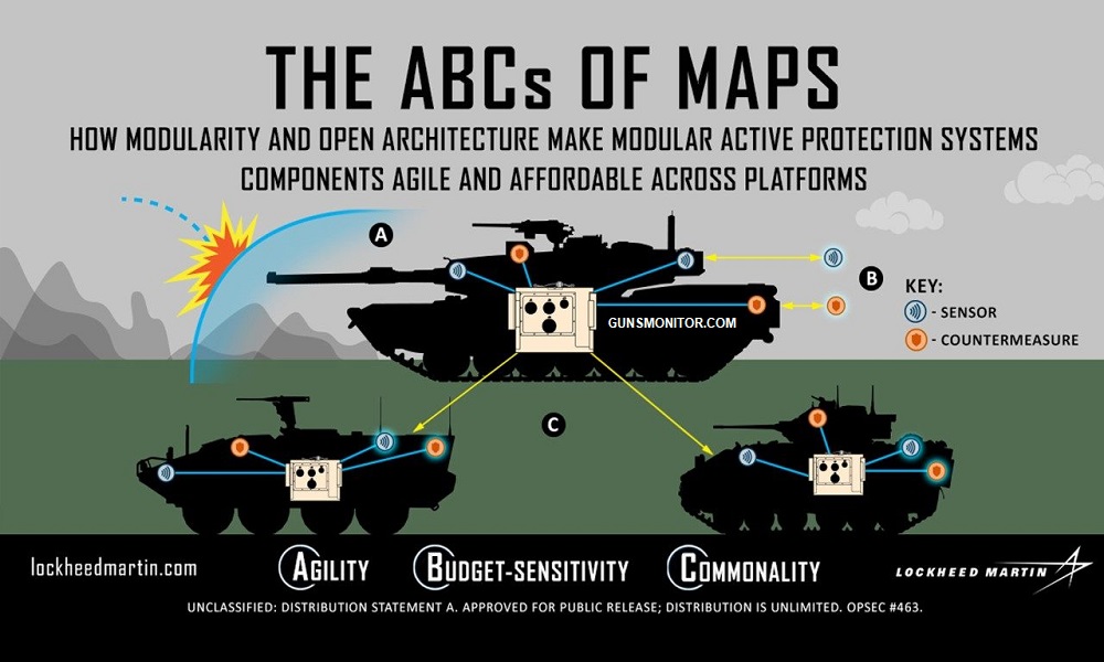 یکی از مهمترین ویژگیهای «سیستم محافظتی فعال ماژولار لاکهید مارتین» یا به اختصار MAPS ماژولار بودن آن است یعنی براحتی و در نهایت سادگی میتوان ویژگیهای این کیت را بنا بر نوع نیاز دفاعی تغییر داد. از سوی دیگر ماژولار بودن سیستم، امکان بروزرسانی راحت و دائمی را نیز برای آن ایجاد میکند.