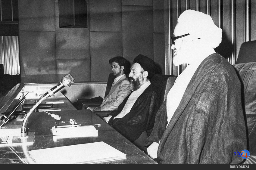 آیت الله خامنهای، هادی غفاری و حسن روحانی در تصویر مشخص هستند