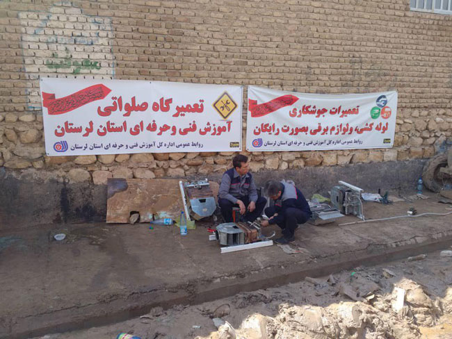 گروهی از تکنسینهای فنی حرفهای لرستان، لوازم برقی و گازسوز شهروندان سیل زده در معمولان را رایگان تعمیر میکنند.