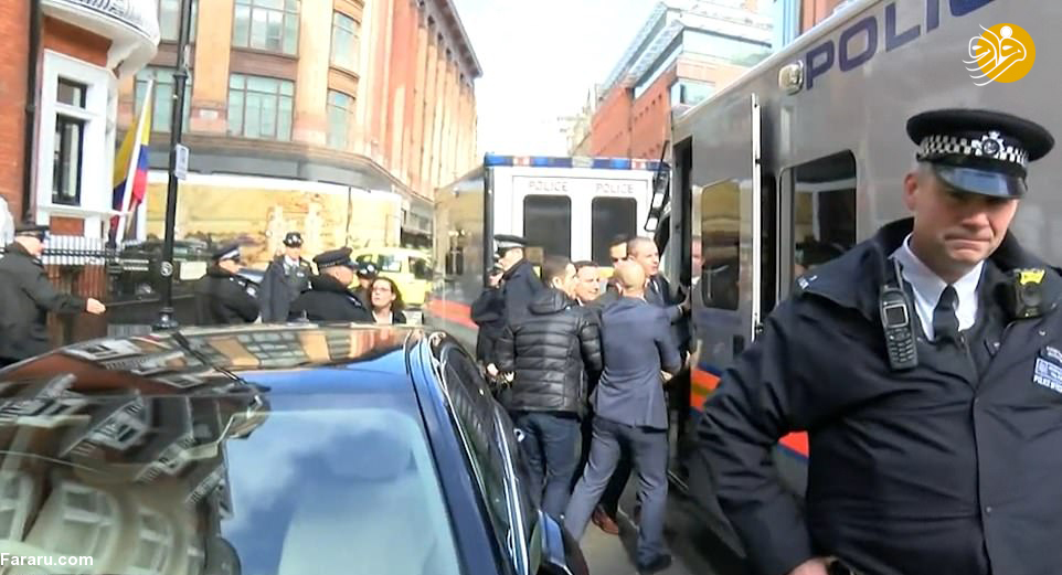 تصاویر لحظه بازداشت جولیان آسانژ‌ بنیانگذار سایت افشاگر ویکی‌لیکس