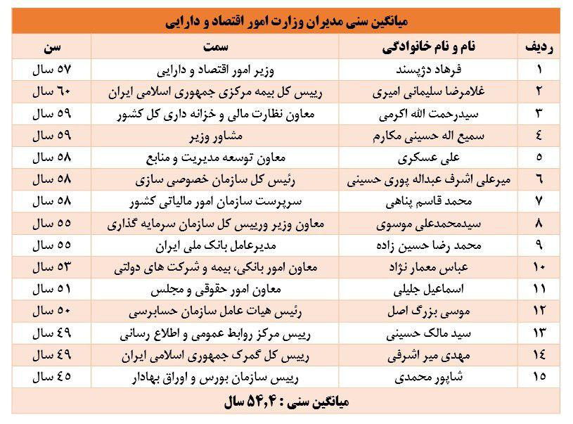 بررسی وضعیت مدیران ارشد وزارتخانههای اقتصادی در میزان استفاده از جوانان نشان میدهند که وزاریی که سال گذشته رای اعتماد گرفته اند، به جز شریعتمداری همگی به سمت پیرمرد سالاری رفته اند و این وزارتخانهها نسبت به قبل پیرتر شده اند و این ناامید کننده است.
