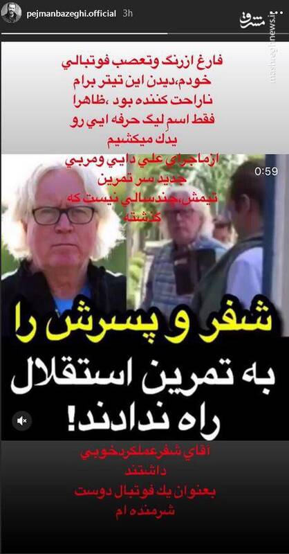 پژمان بازغی بازیگر سینما و تلویزیون در استوری اینستاگرامش نسبت به برکناری وینفرد شفر سرمربی استقلال و جلوگیری از ورودش به باشگاه واکنش نشان داد.