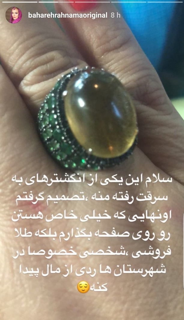 بهاره رهنما این استوری را از سرقت انگشتر خاصش منتشر کرد.