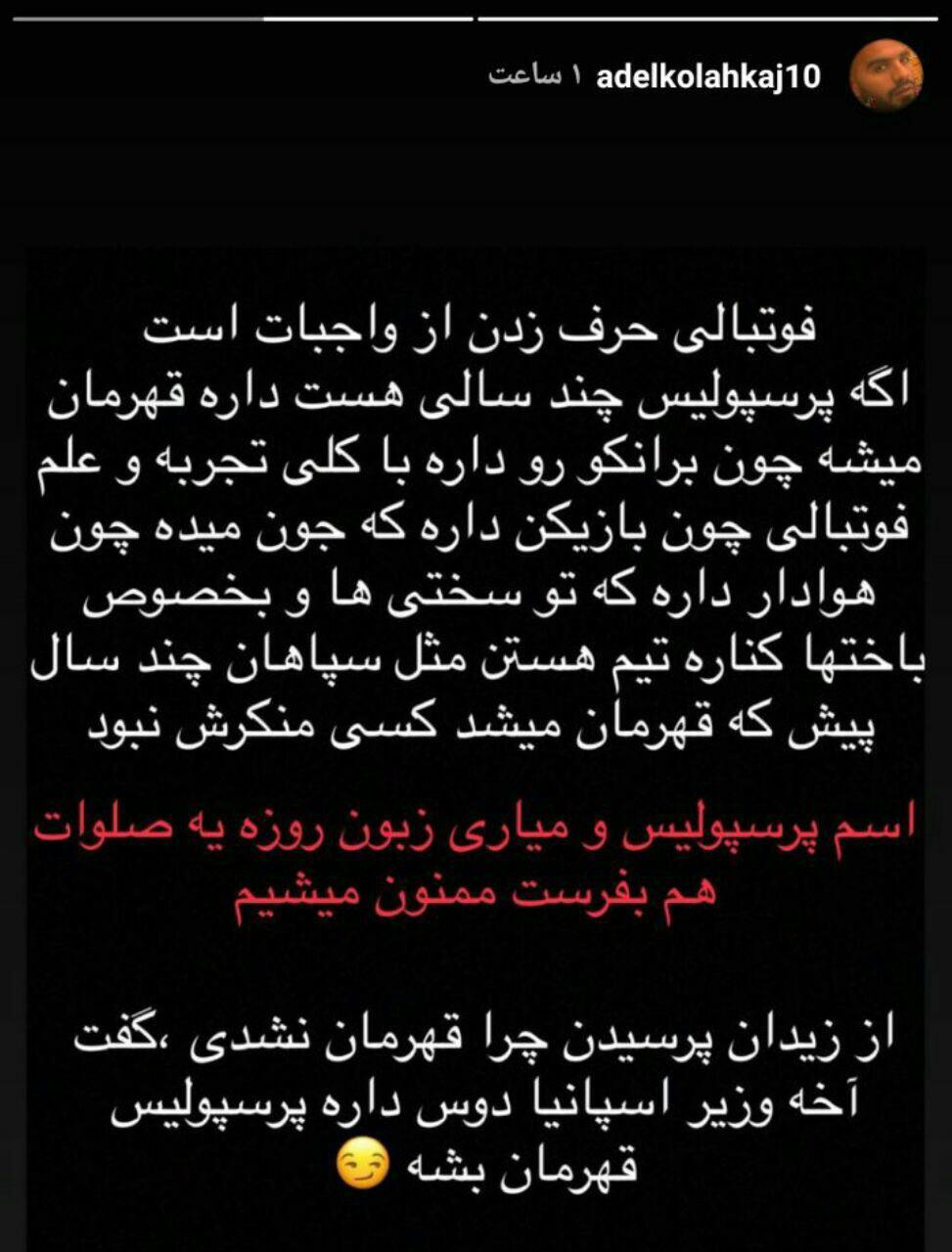 استوری عادل کلاه کج، بازیکن سابق پرسپولیس