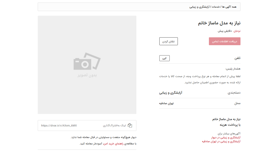 سایت "دیوار" همچنان خبرساز و حاشیه آفرین است . اینبار انتشار آگهی مدل ماساژ و اغفال زنان و پسران.
