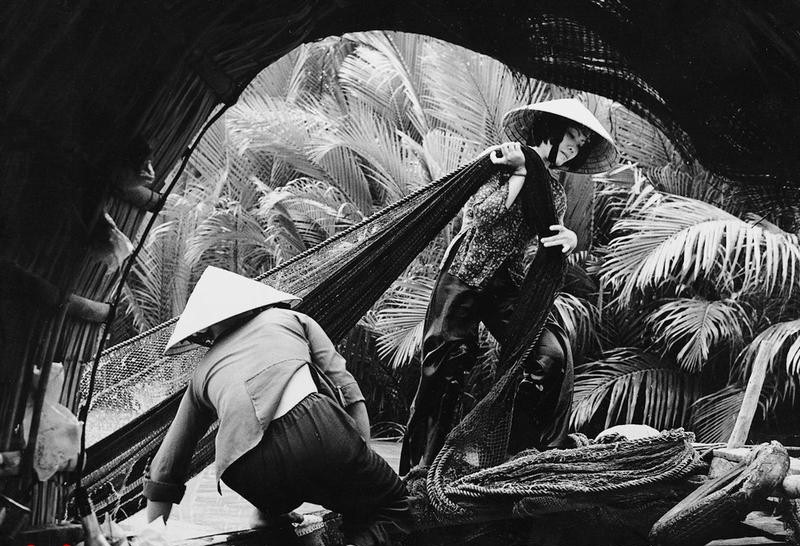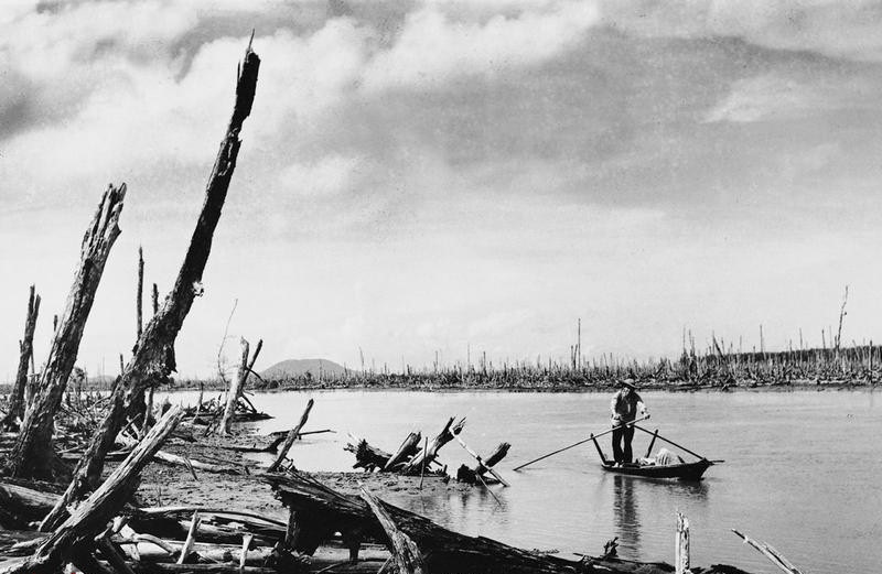 این عکس، یک قایقران چریکی در دلتای مِکونگ را نشان میدهد. درختان این منطقه به خاطر عامل نارنجی سوخته و از بین رفتهاند. یکی از اقدامات ایالات متحده در این جنگ حذف پوشش گیاهی ویت کنگ بود. عامل نارنجی نوعی سّم قوی است که ارتش آمریکا در جنگ ویتنام از سال ۱۹۶۱-۱۹۷۱ برای از بین بردن جنگلهای پناهگاه ویت کنگ به کار برد. لازم به ذکر است که عامل نارنجی موجب بسیاری از بیماریها و نقص عضو نوزادان شد و نسلهای بعدی مردم ویتنام را دچار مشکلات و رنجهای طاقت فرسا کرد. جنایتی که در این مجموعه مسکوت ماند.