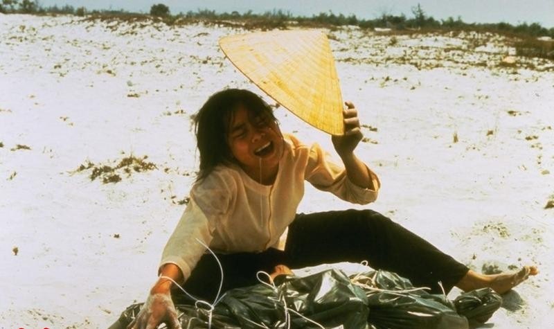 این عکس، بیوه زن گریانی را نشان میدهد که کیسه حاوی اعضای بدن شوهرش را که در یک گور دسته جمعی پیدا شده، دریافت کرده است. شوهر او در طول حمله تت کشته شده است.