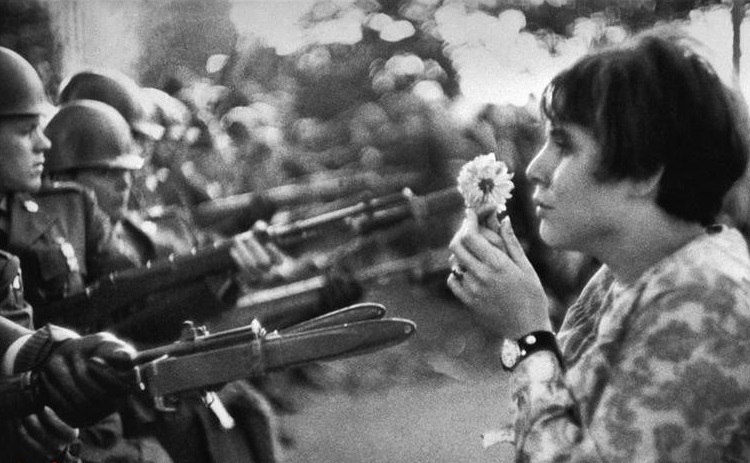 این عکس، نمایی از یک معترض جنگ به نام «ژان رز کاسمیر» است در مقابله با گارد ملی آمریکا در سال ۱۹۶۷. او با شاخه گلی در دست به همراه جمعی دیگر در واشنگتن گرد هم آمدند تا به جنایات آمریکا در جنگ ویتنام اعتراض کنند.