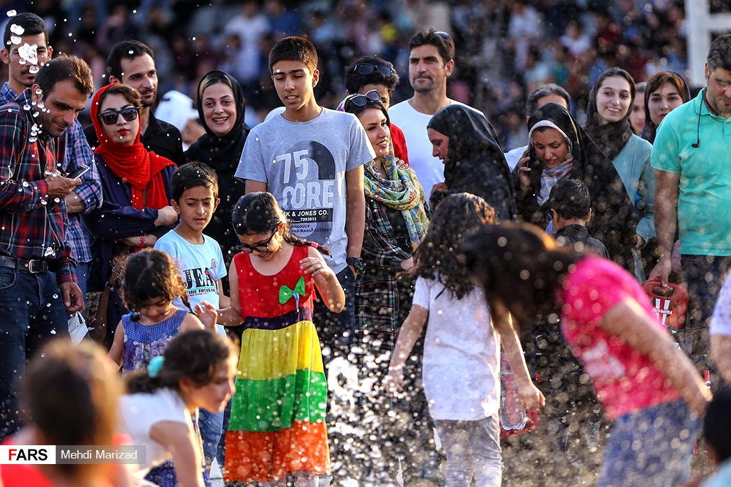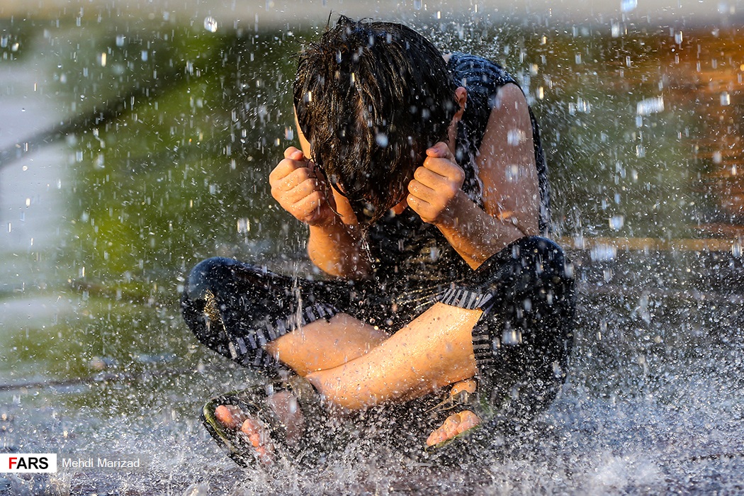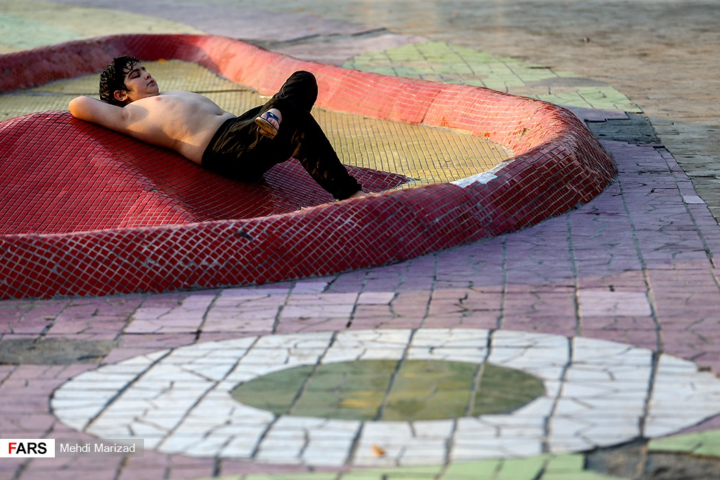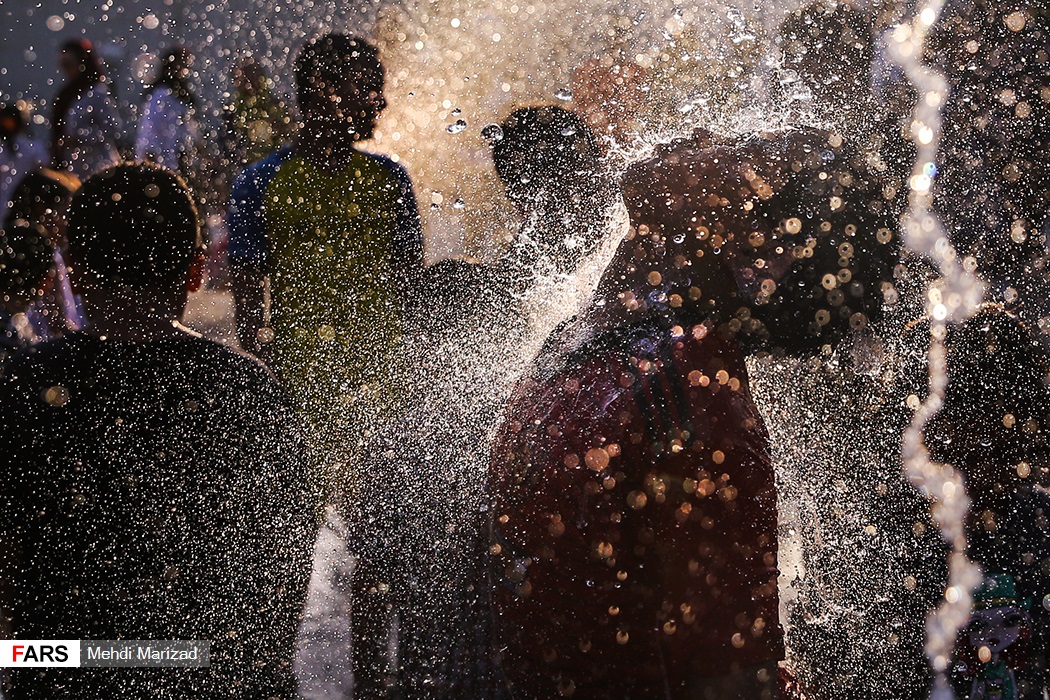 عکس| شنای بیژن بنفشه خواه با لنگ در پشت صحنه سریال «مگه تموم عمر چندتا بهاره»