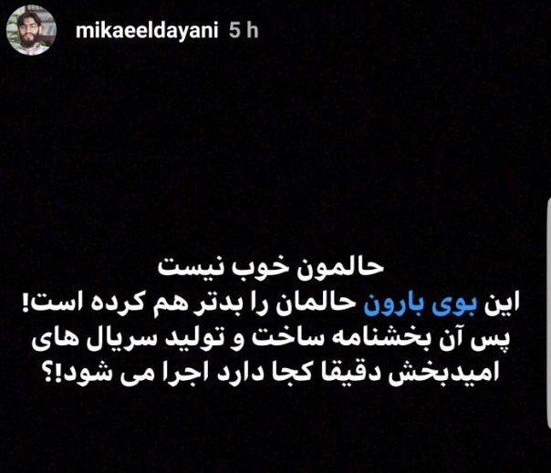 رویداد۲۴ میکائیل دیانی از فعالان رسانه این استوری را در اعتراض به این سریال منتشر کرد.