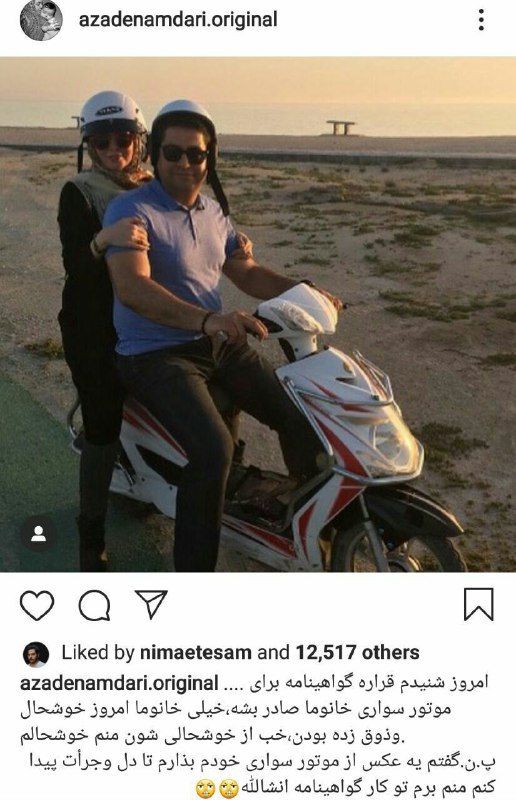 آزاده نامداری در حال موتورسواری! + عکس