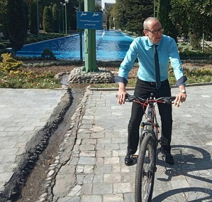 دوچرخه سواری اشتفان شولتس، سفیر اتریش در ایران، در پارک شهر.